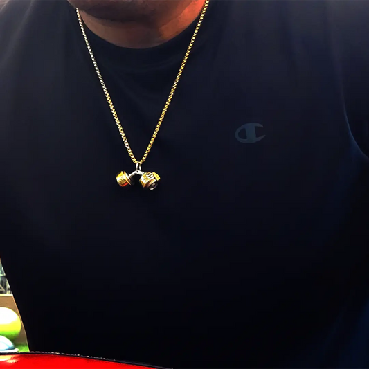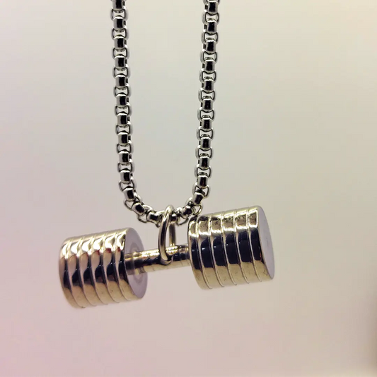 Stainless Steel Six Plate Dumbell Barbell Pendant Necklace