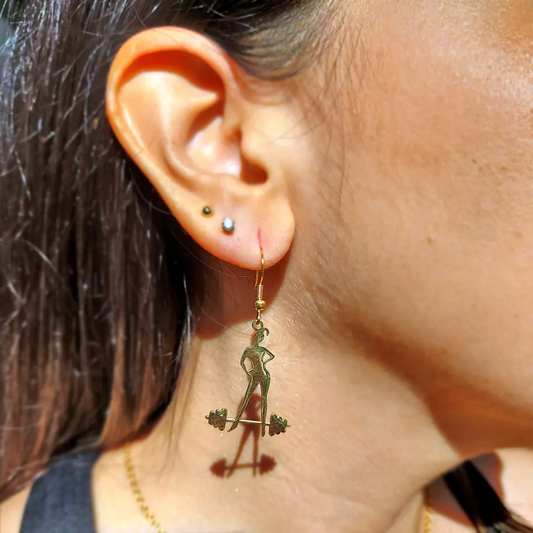 Stainless Steel Girl Weightlifting Earrings