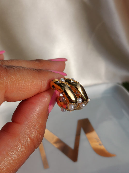 Aura Baroque Pearl Ring | Adjustable 18K Gold Plated Open Band