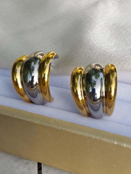 Valentina Two-Tone Chunky C-Hoop Earrings | 18K Gold Plated & Stainless Steel