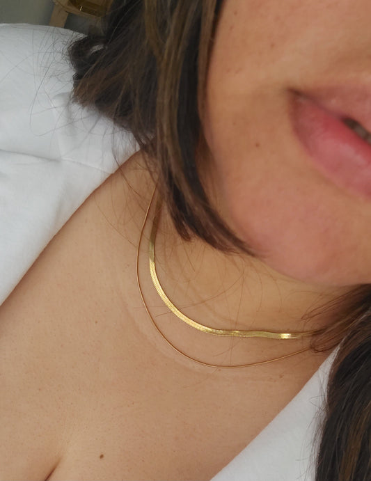 Double Layer Snake & Herringbone Necklace | Luna Duo | 18K Gold or Silver Tone | 18"