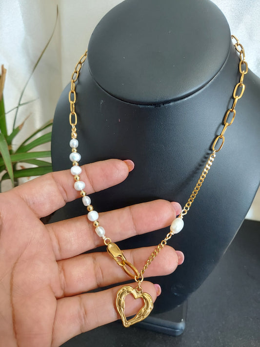 Freshwater Pearl Heart Necklace | 18K Gold Plated | 18 Inch Classic Jewelry