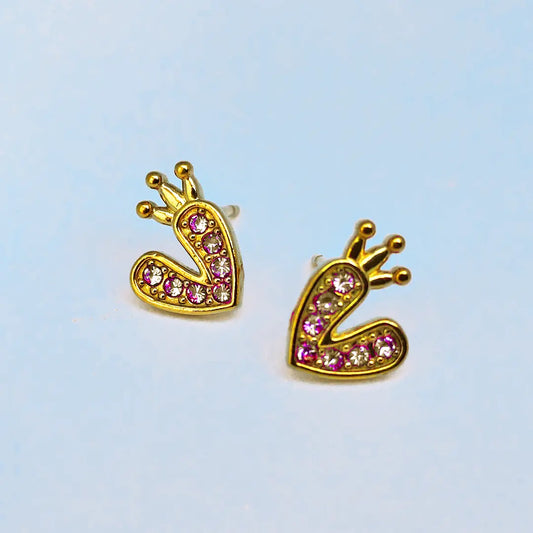 Stainless Steel Heart Crown Rhinestone Stud Earrings
