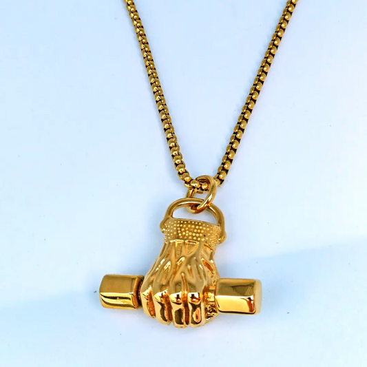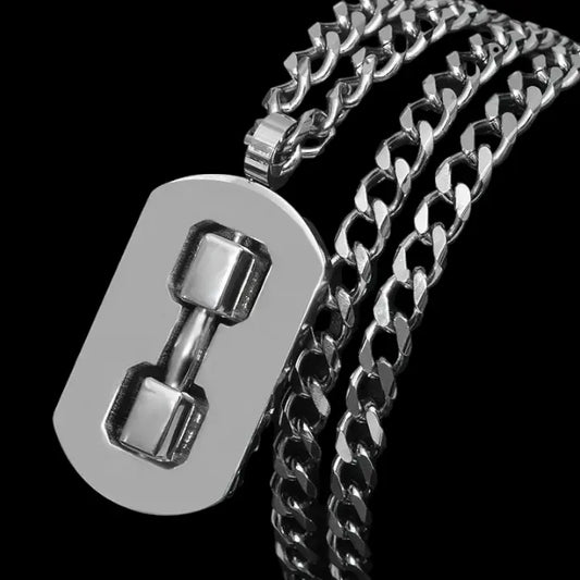 Domineering Fist Fitness Handshake Dumbbell Pendant Necklace