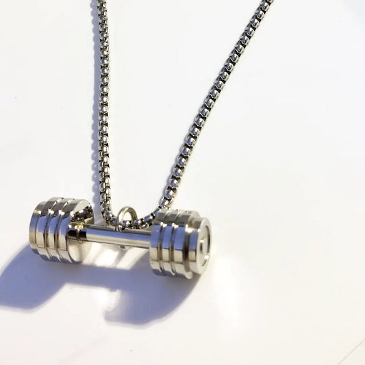 Stainless Steel Six Plate Dumbell Barbell Pendant Necklace